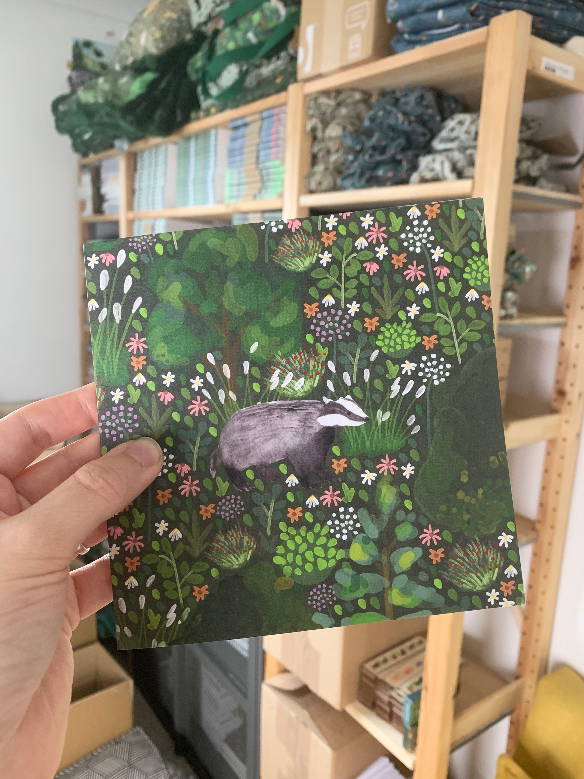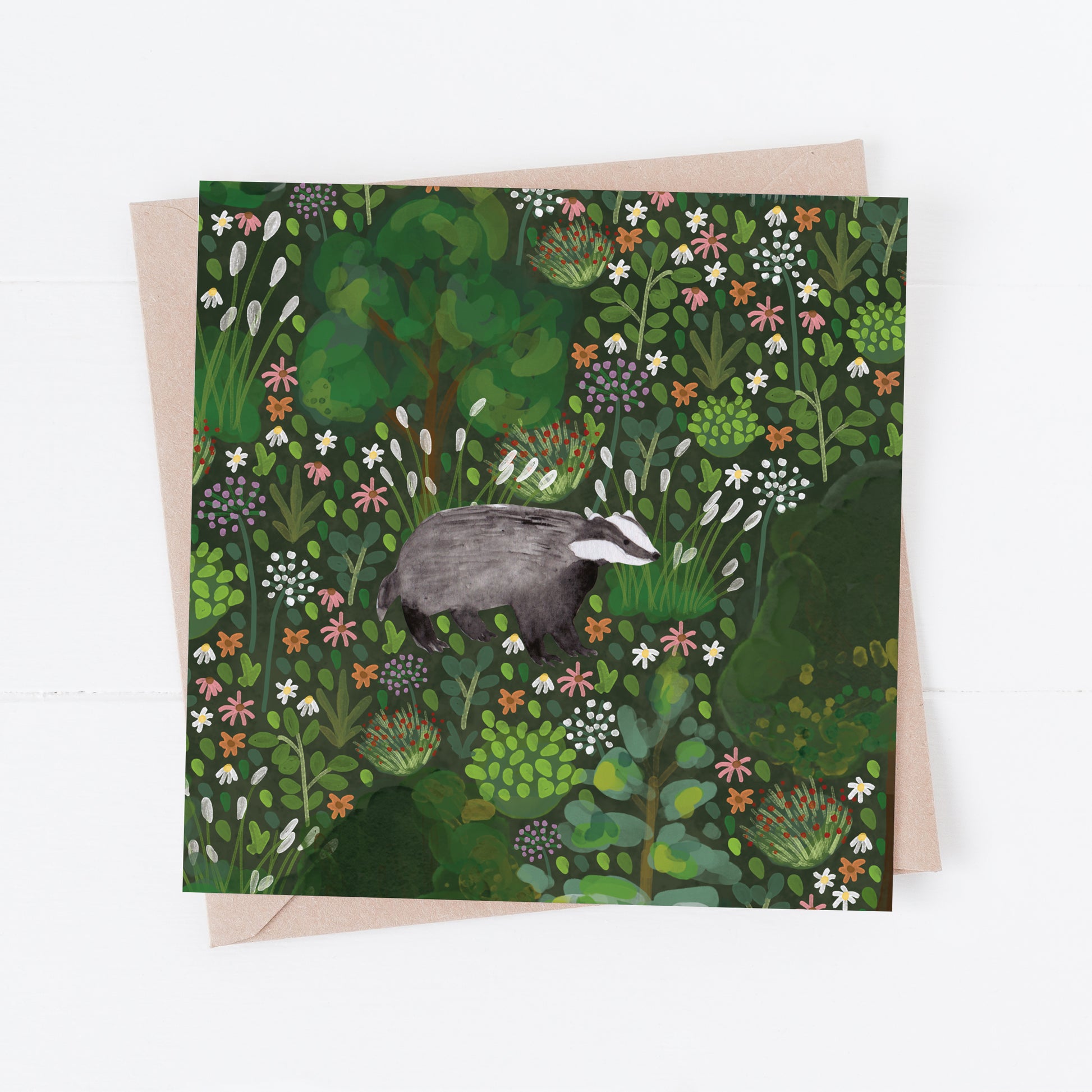 Introducing my Badger Summer Forest greeting card featuring a gorgeous Badger roaming about in the woodland. This card shows off the vibrant flowers and life we find in the forest. This adorable card is perfect for giving to a loved one who loves nature.