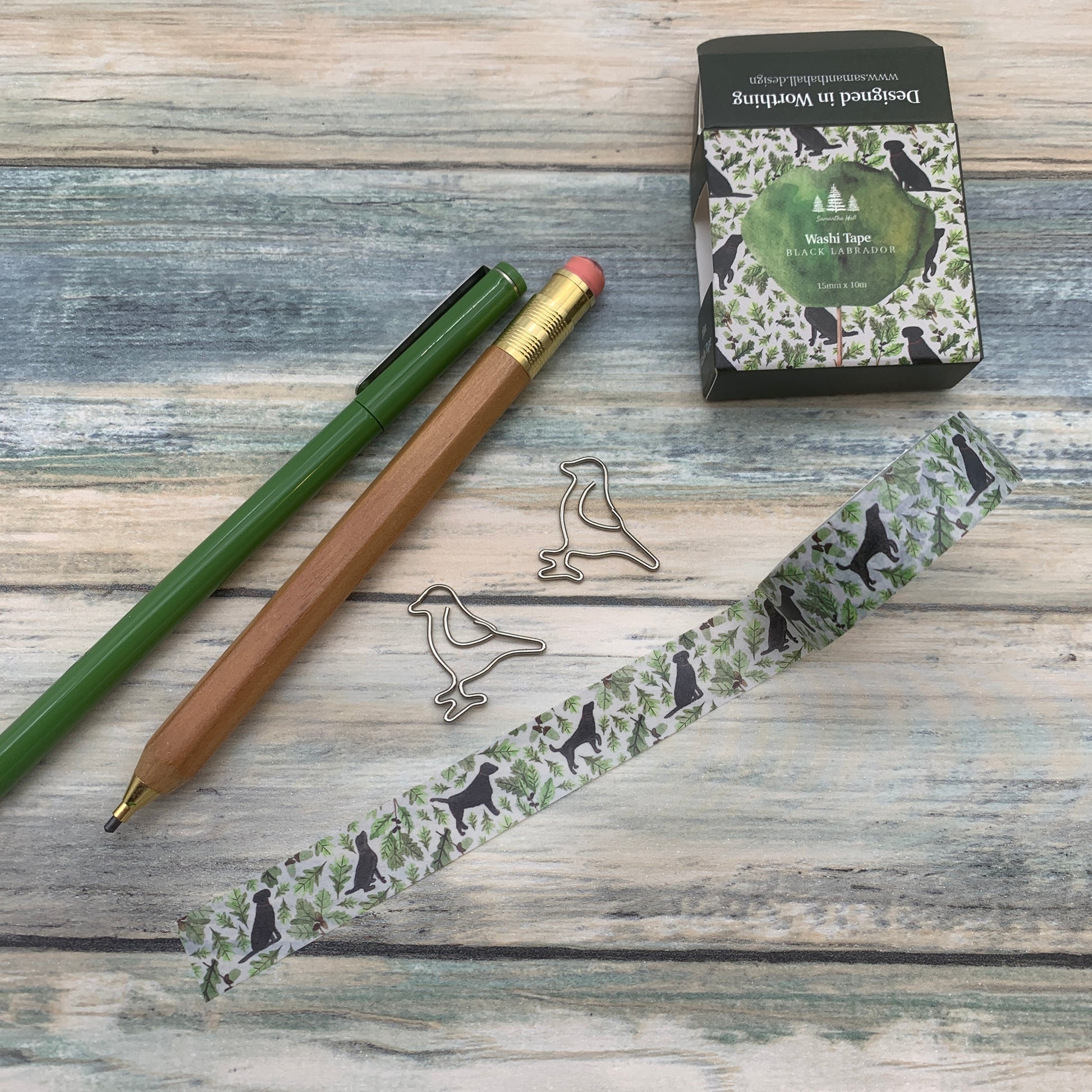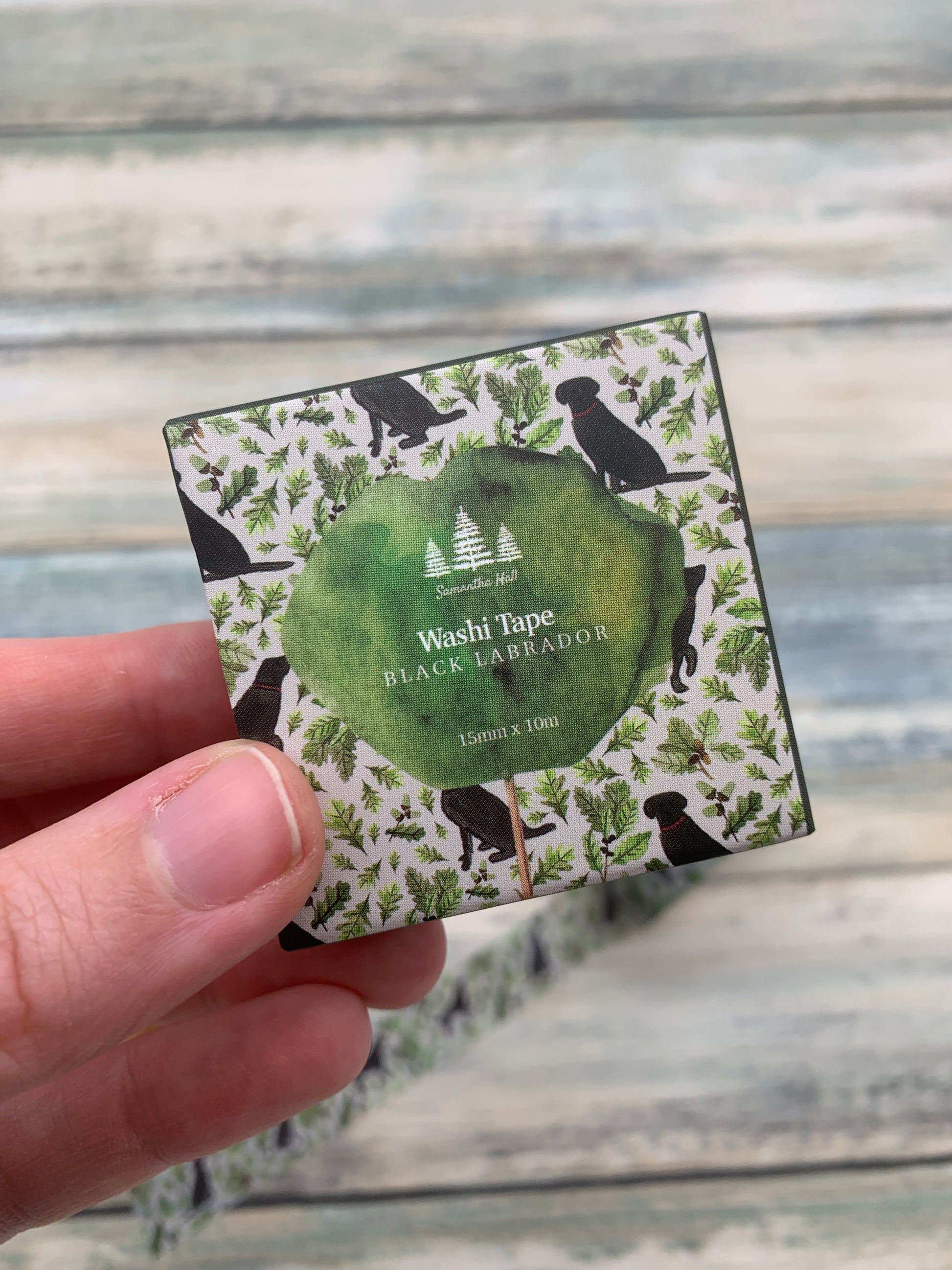 Introducing my Black Labrador Washi Tape, which is perfect for stationery and dog lovers. This tape features black labs amongst leaves and acorns.