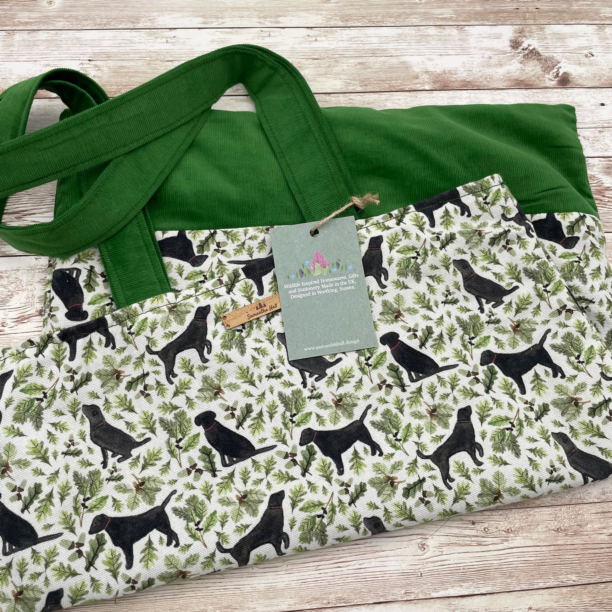 Introducing my Black Labrador dog tote bag. Me and Kat designed this tote bag to fit all of your stationery essentials inside, including a lined pocket to fit one of my notebooks in! Perfect for when you want to protect your favourite book from the elements and other items in your bag.