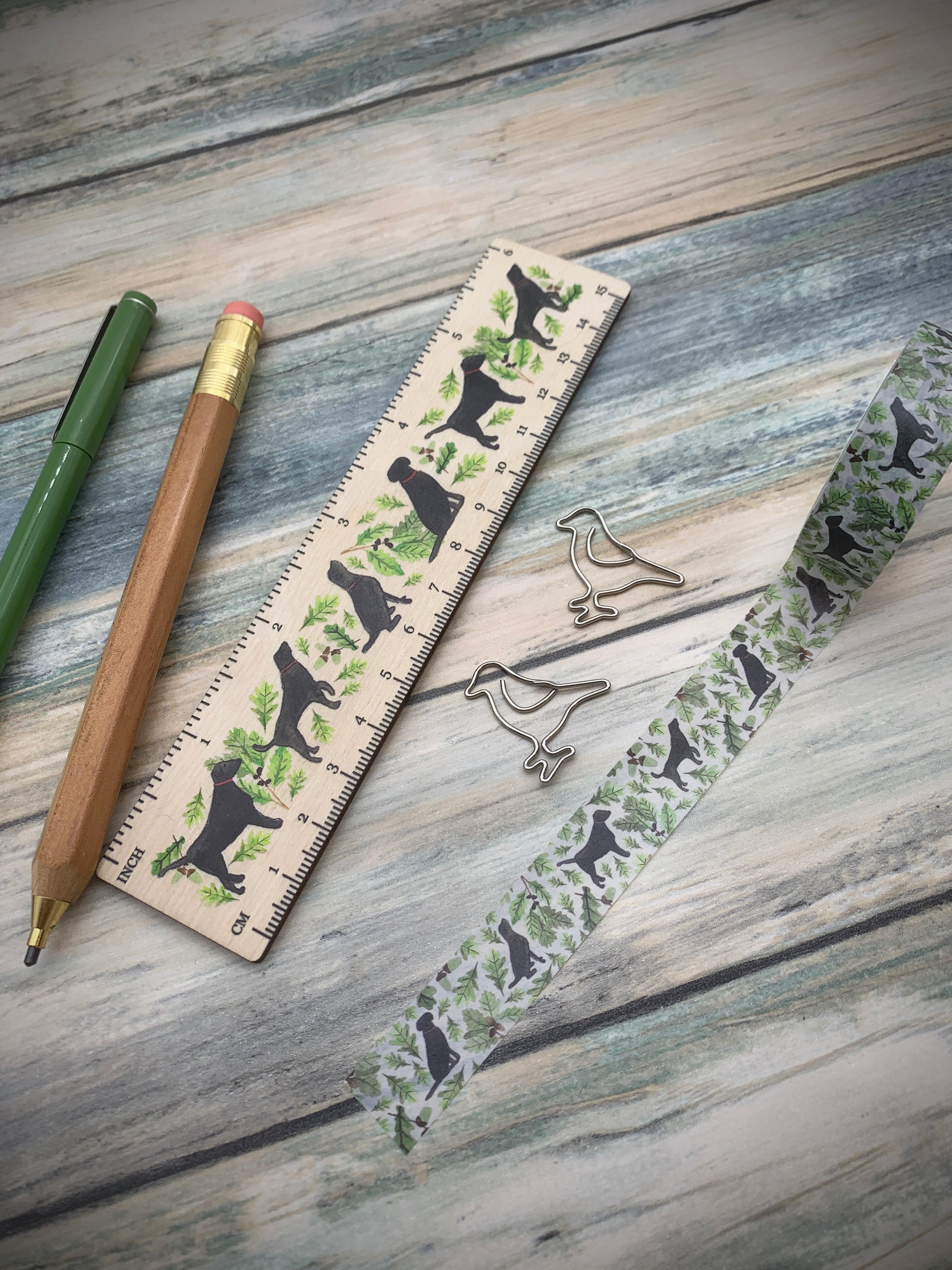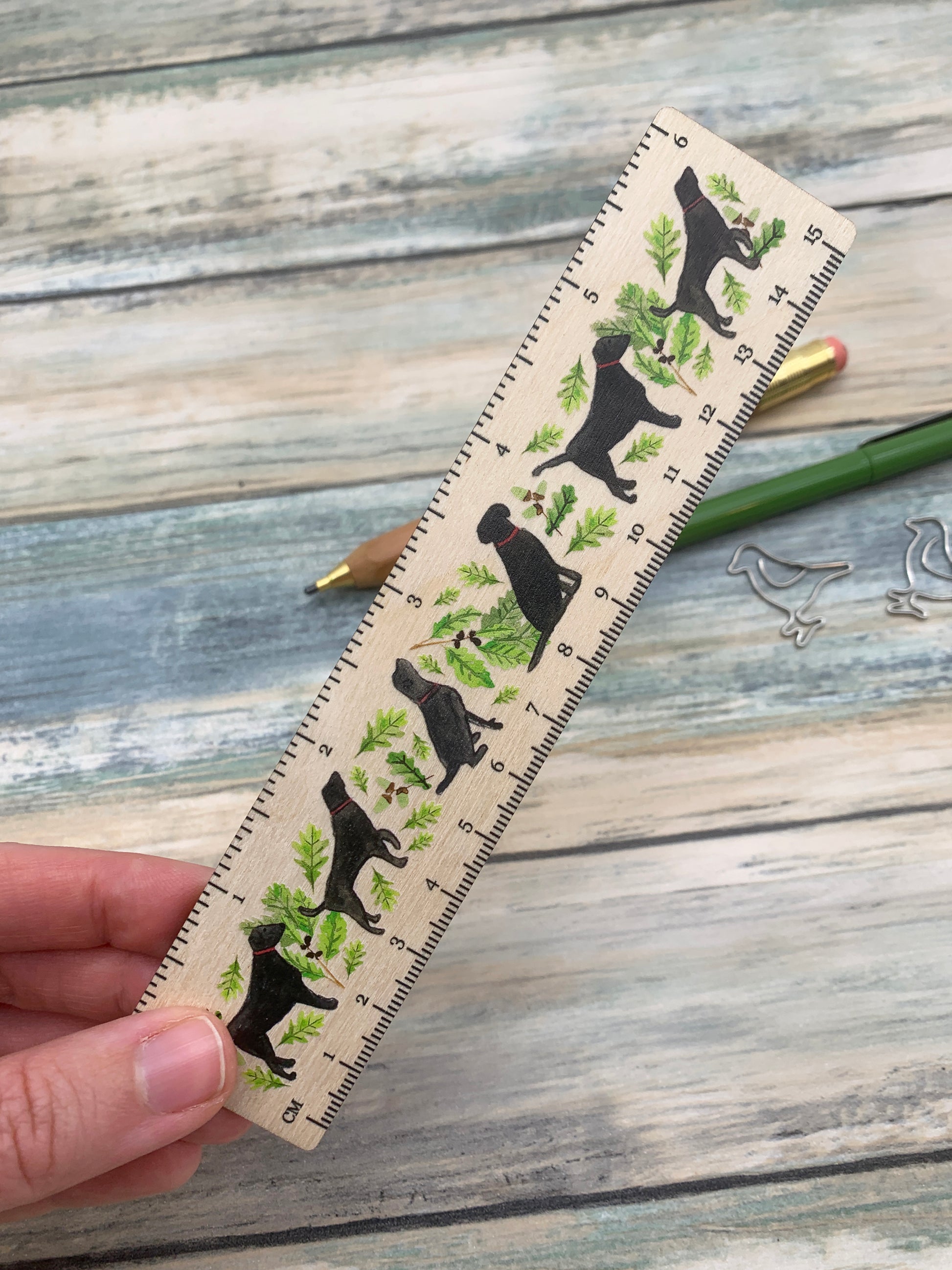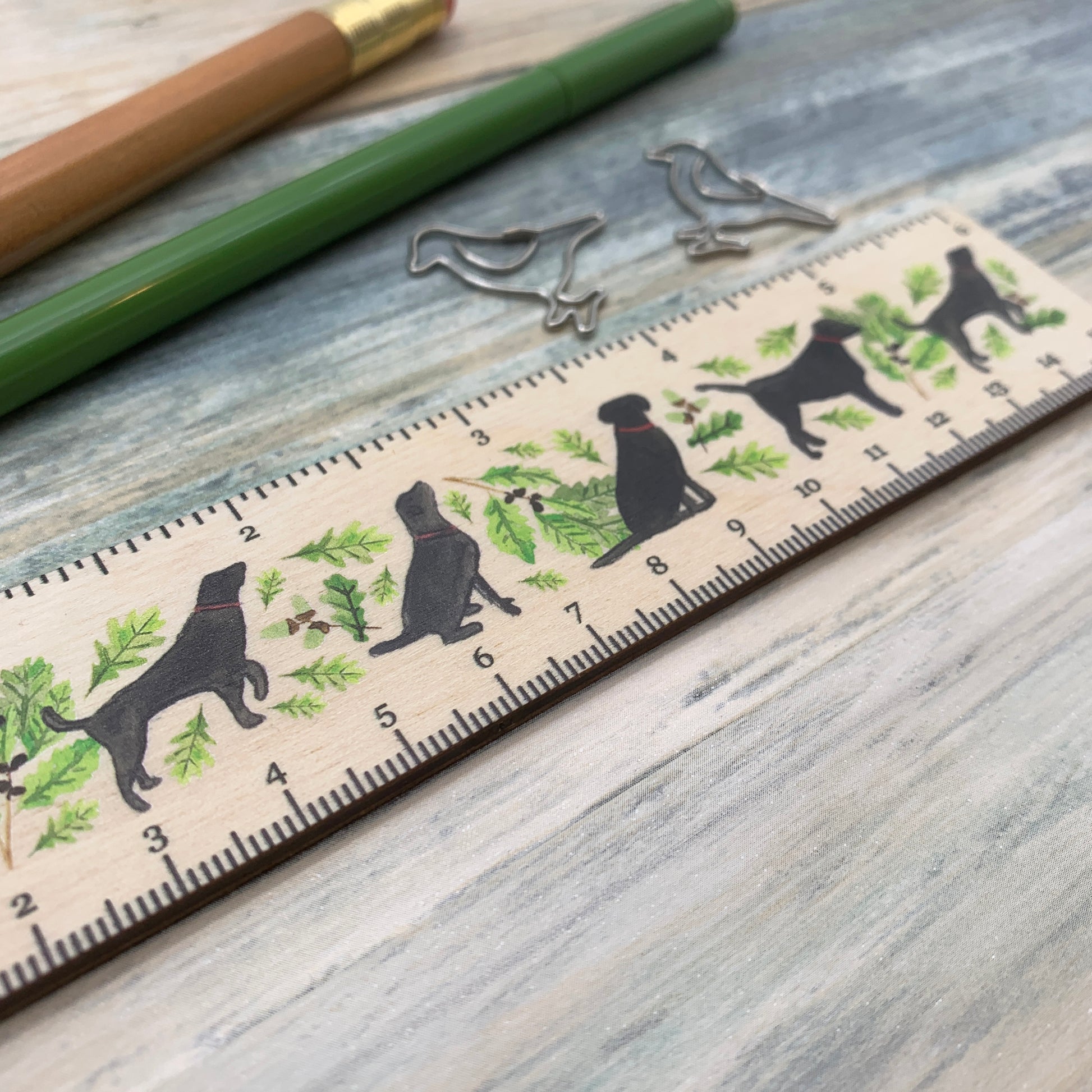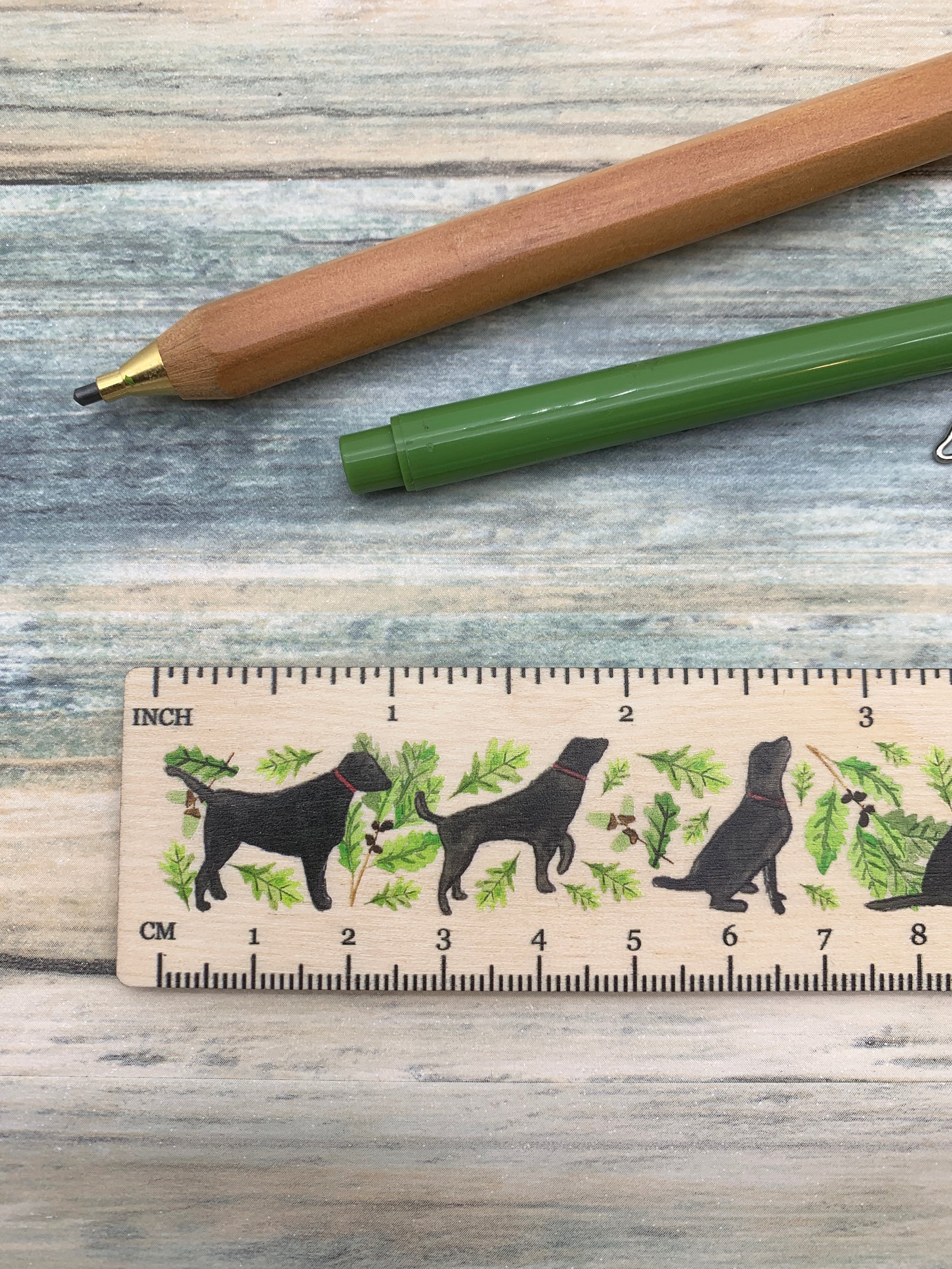 Introducing my Black Labrador wooden ruler, which is perfect for stationery and dog lovers. This ruler features Black Labs in different poses and are amongst autumn leaves.