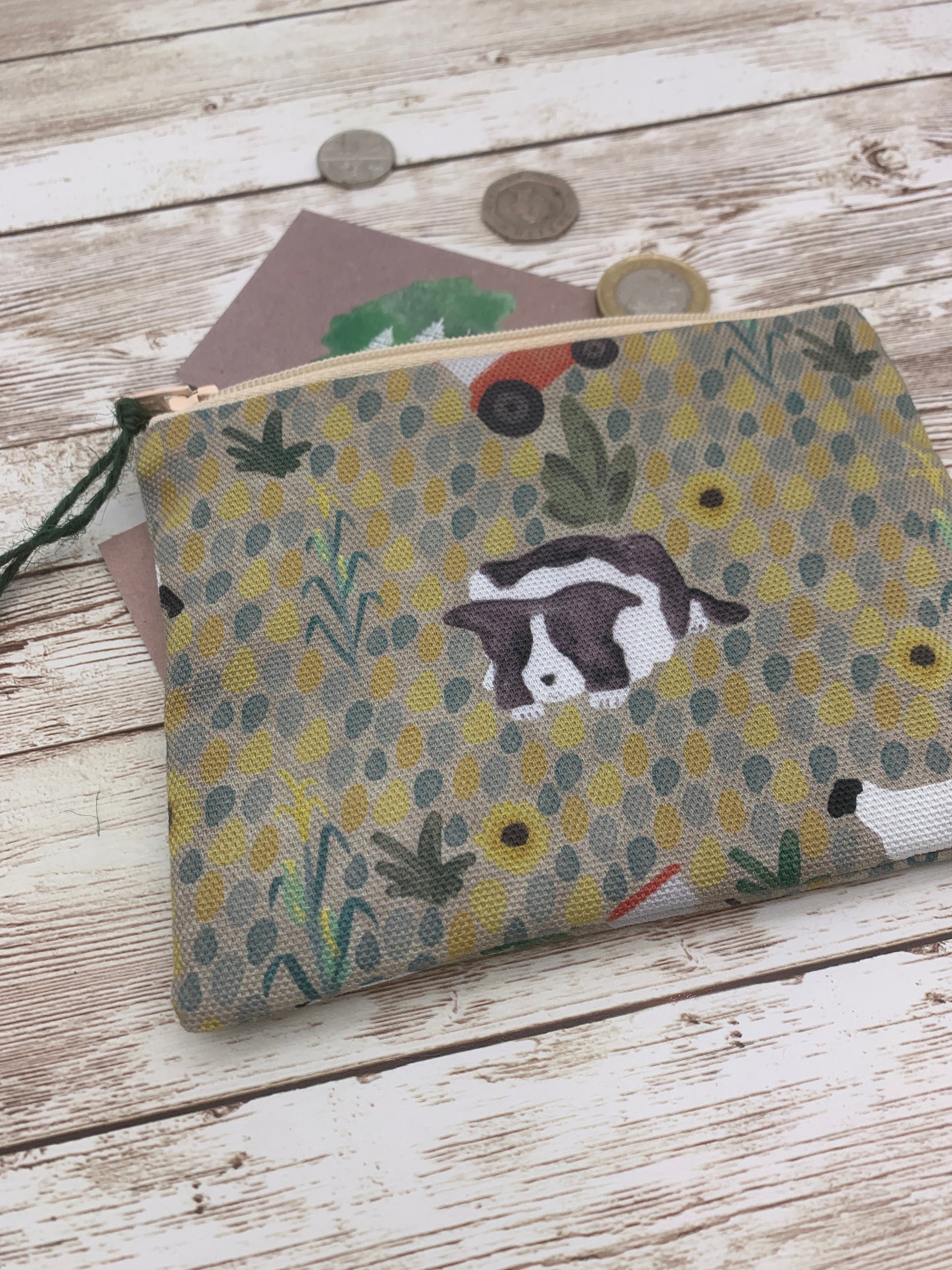 Introducing my Black and White Border Collie coin purse. Featuring a hand painted watercolour sheep dog surrounded by tractors and sheep!