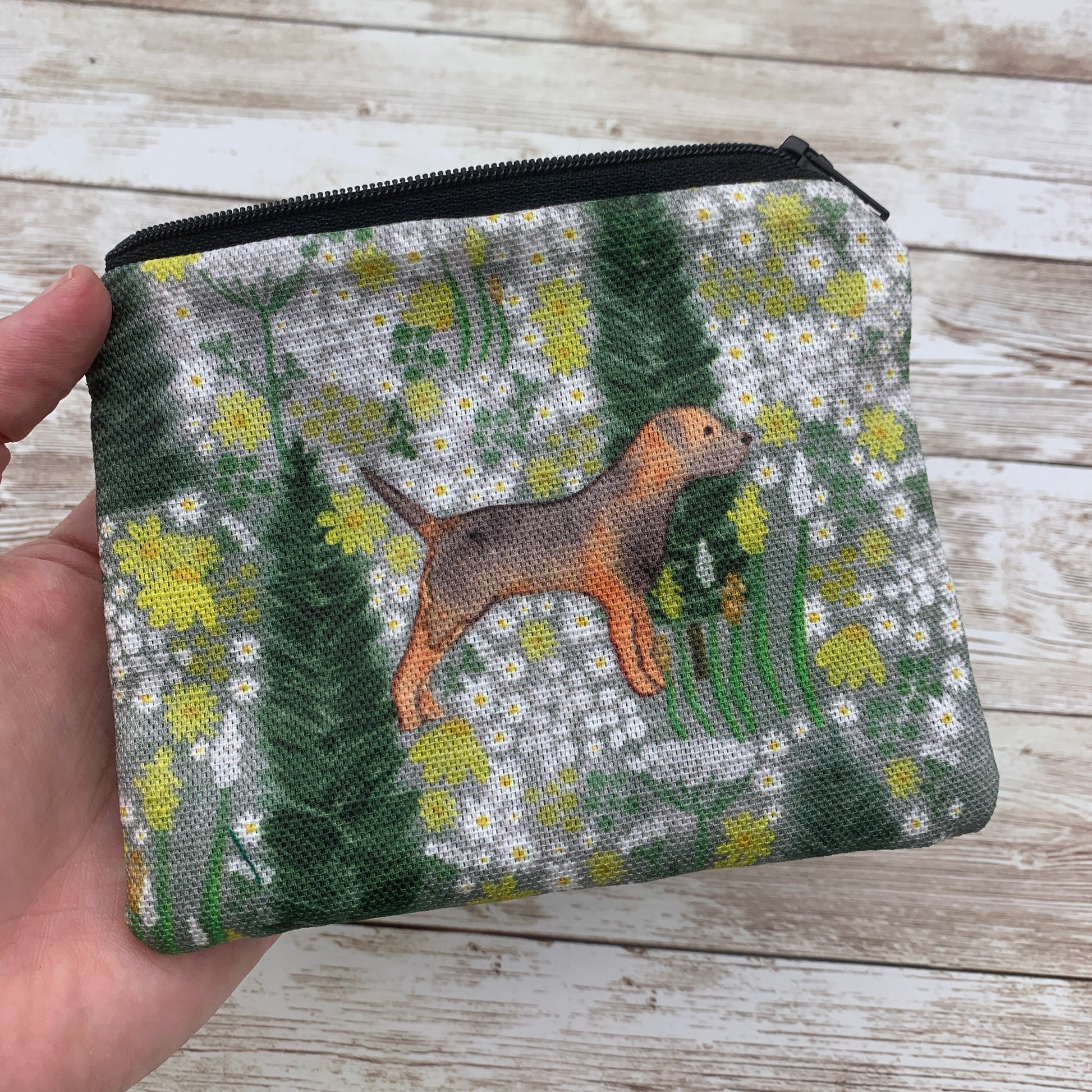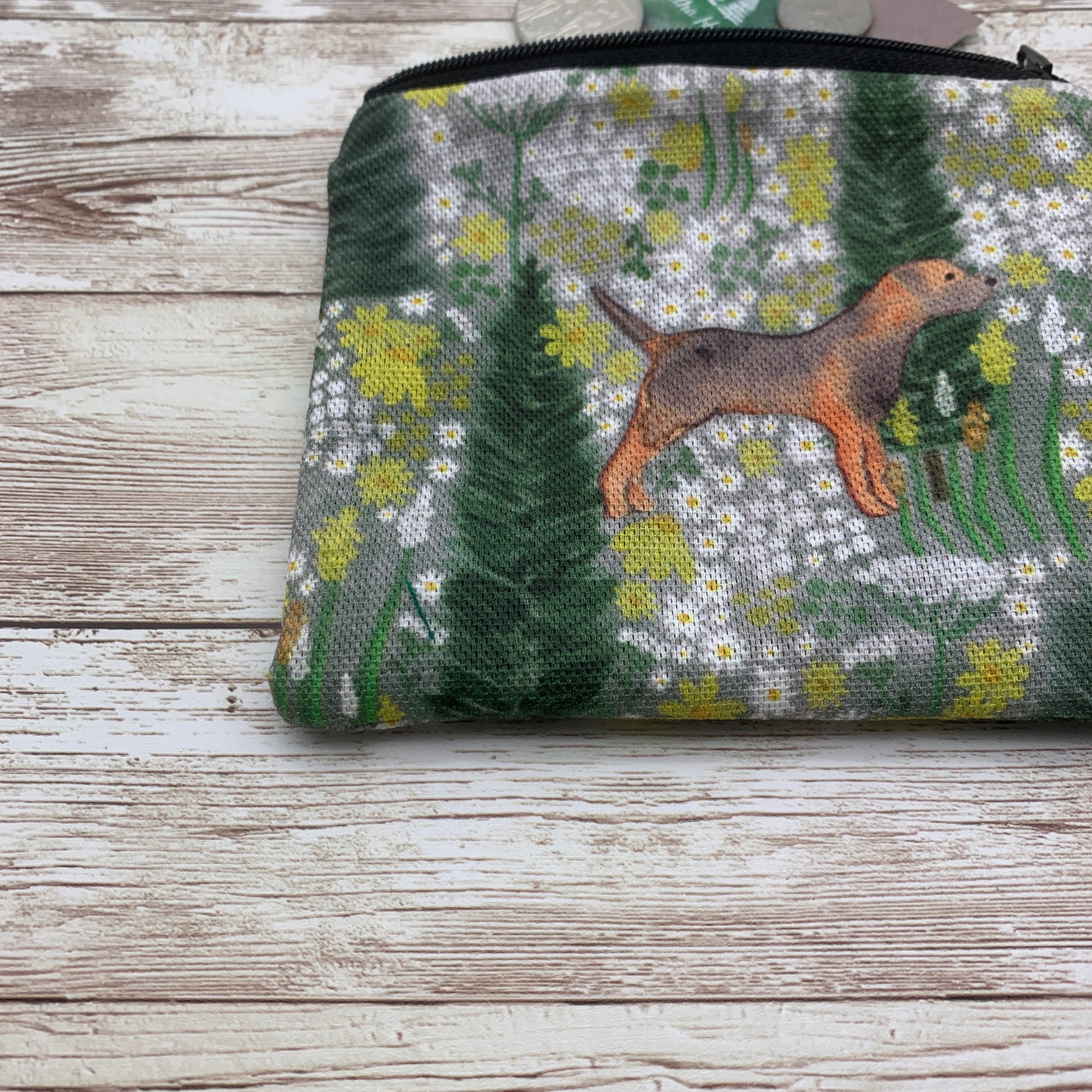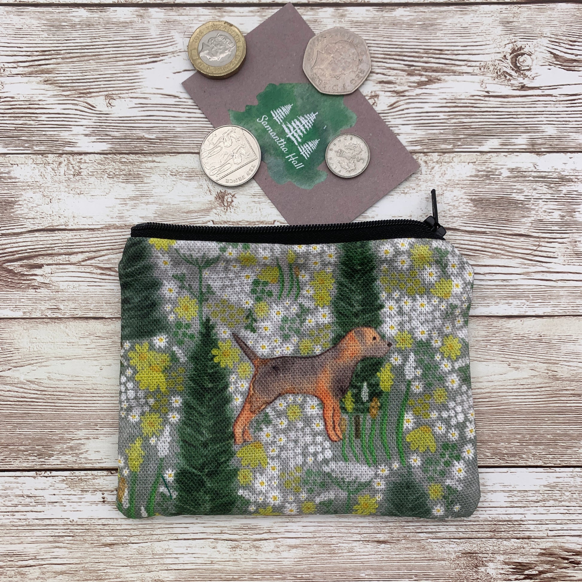 Introducing my Border Terrier coin purse. Featuring a hand painted watercolour little border terrier surrounded by spring flowers and pine trees.