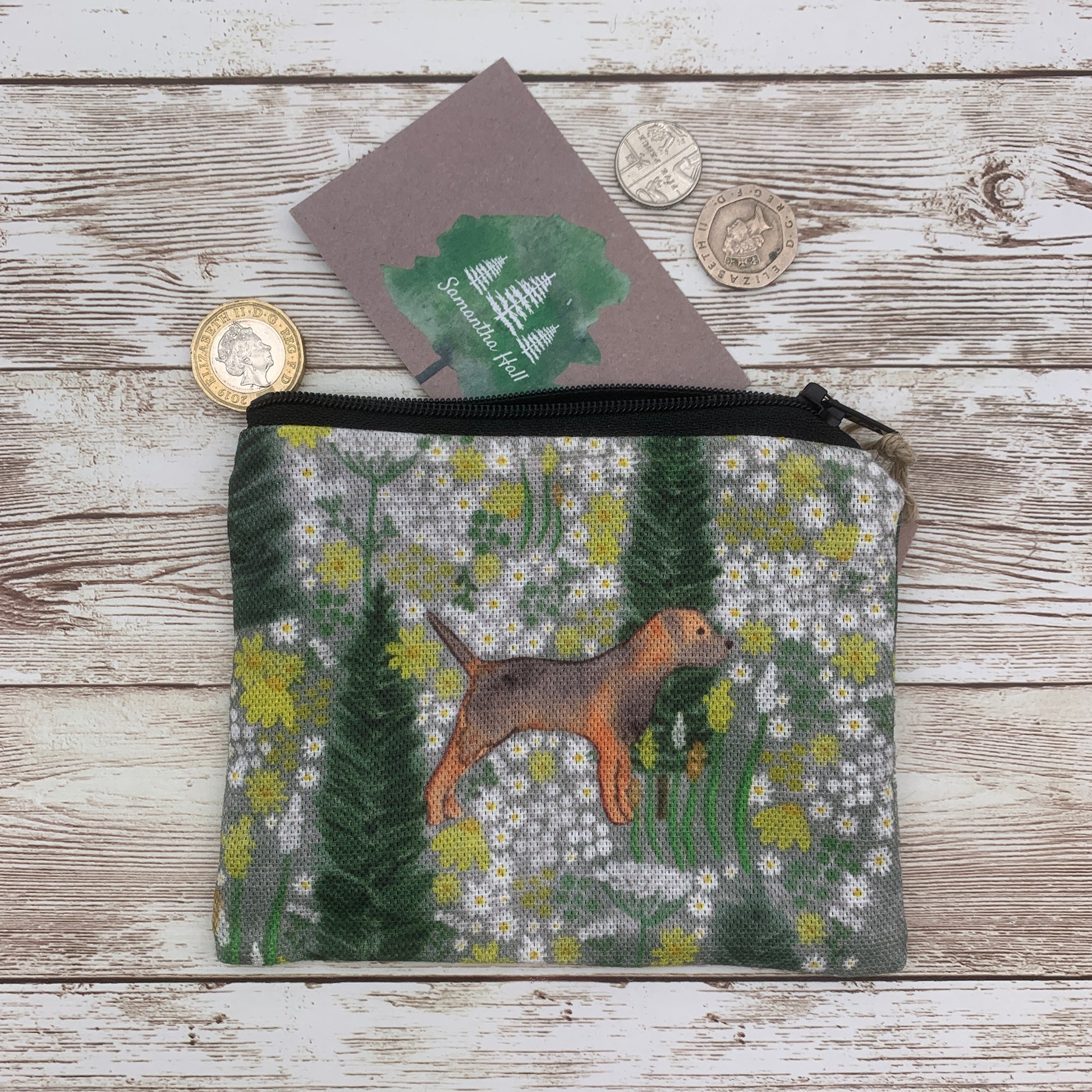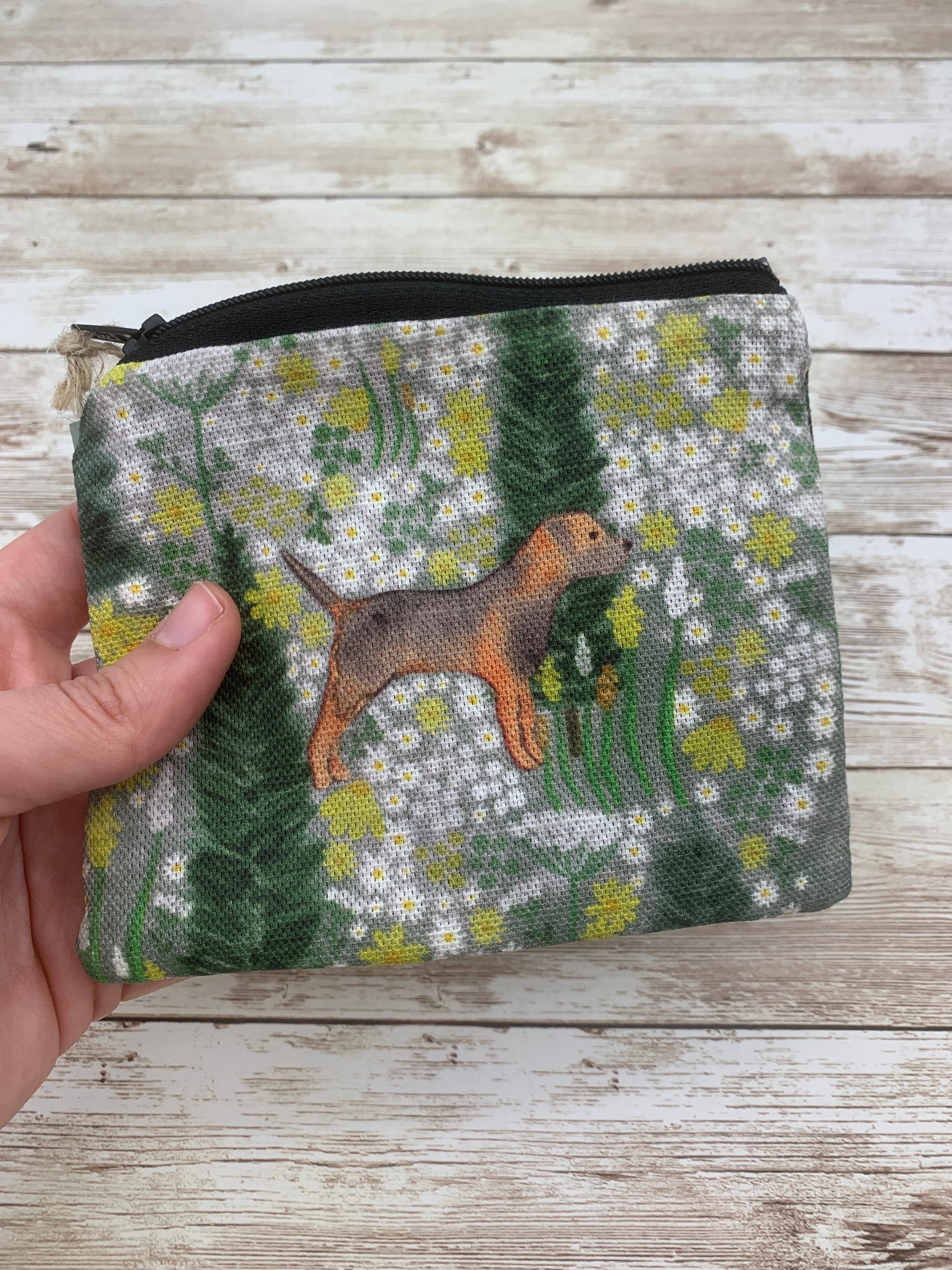 Introducing my Border Terrier coin purse. Featuring a hand painted watercolour terrier surrounded by pine trees and flowers they may find in the forest.