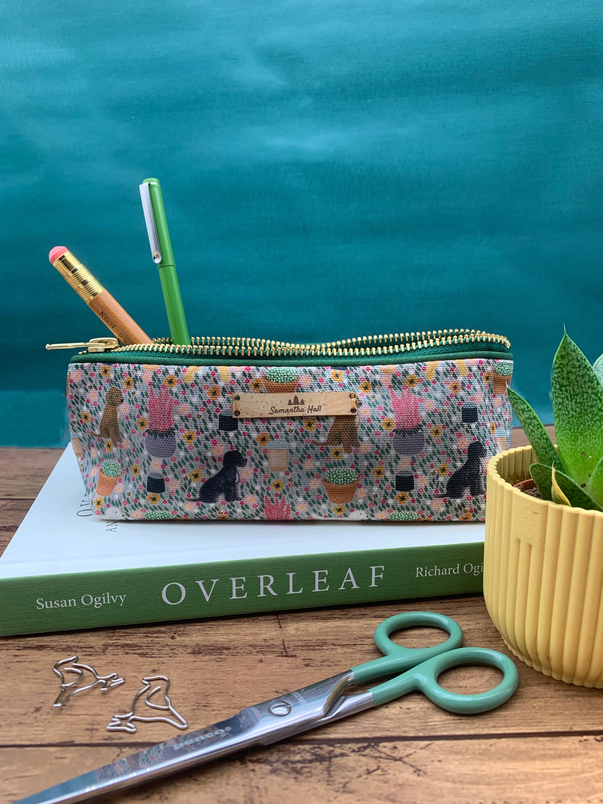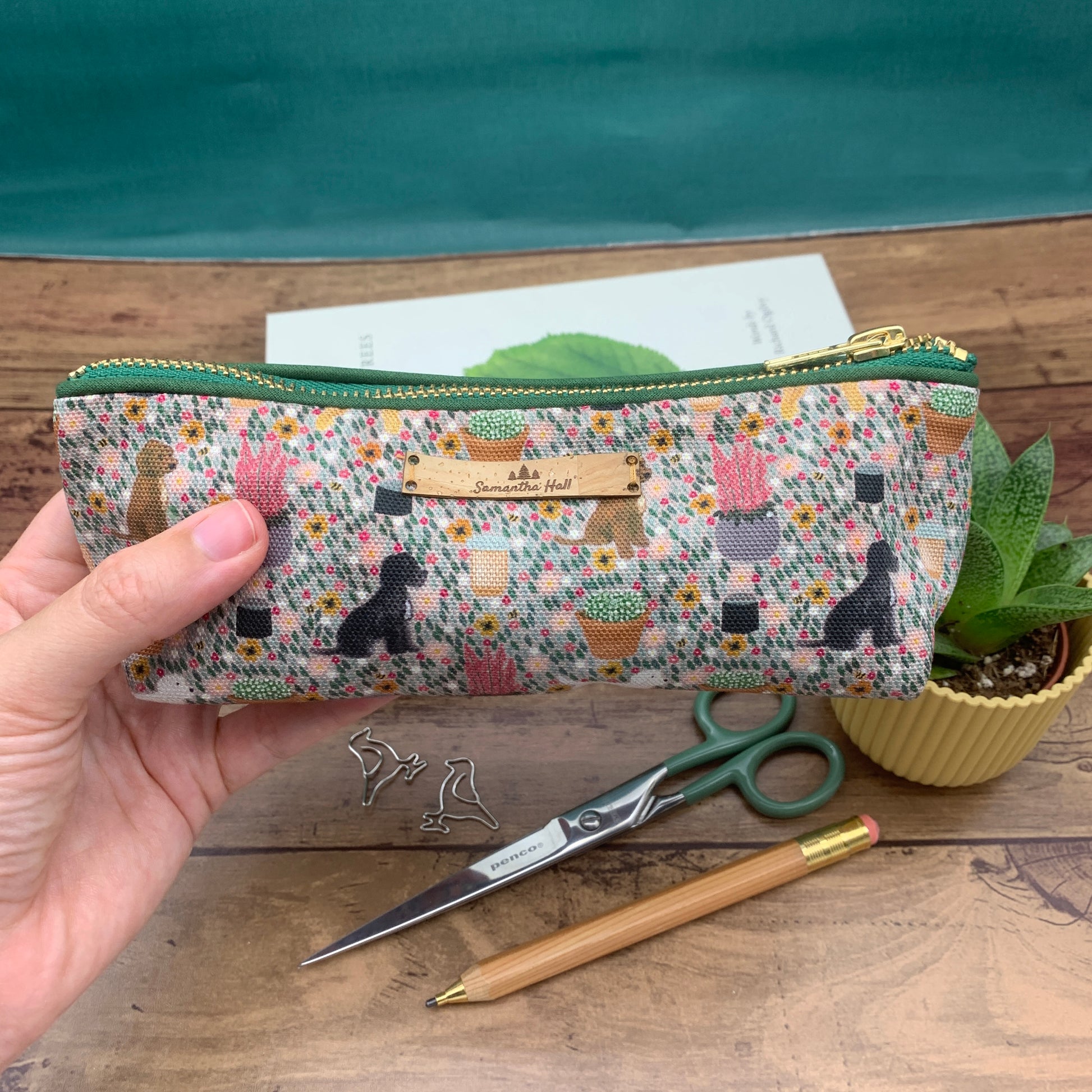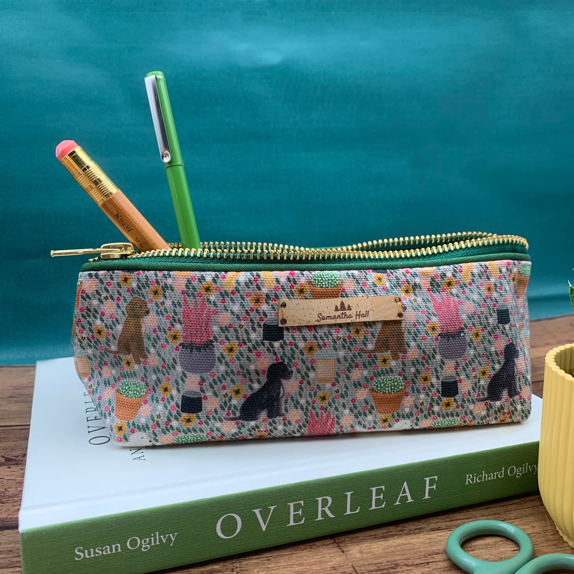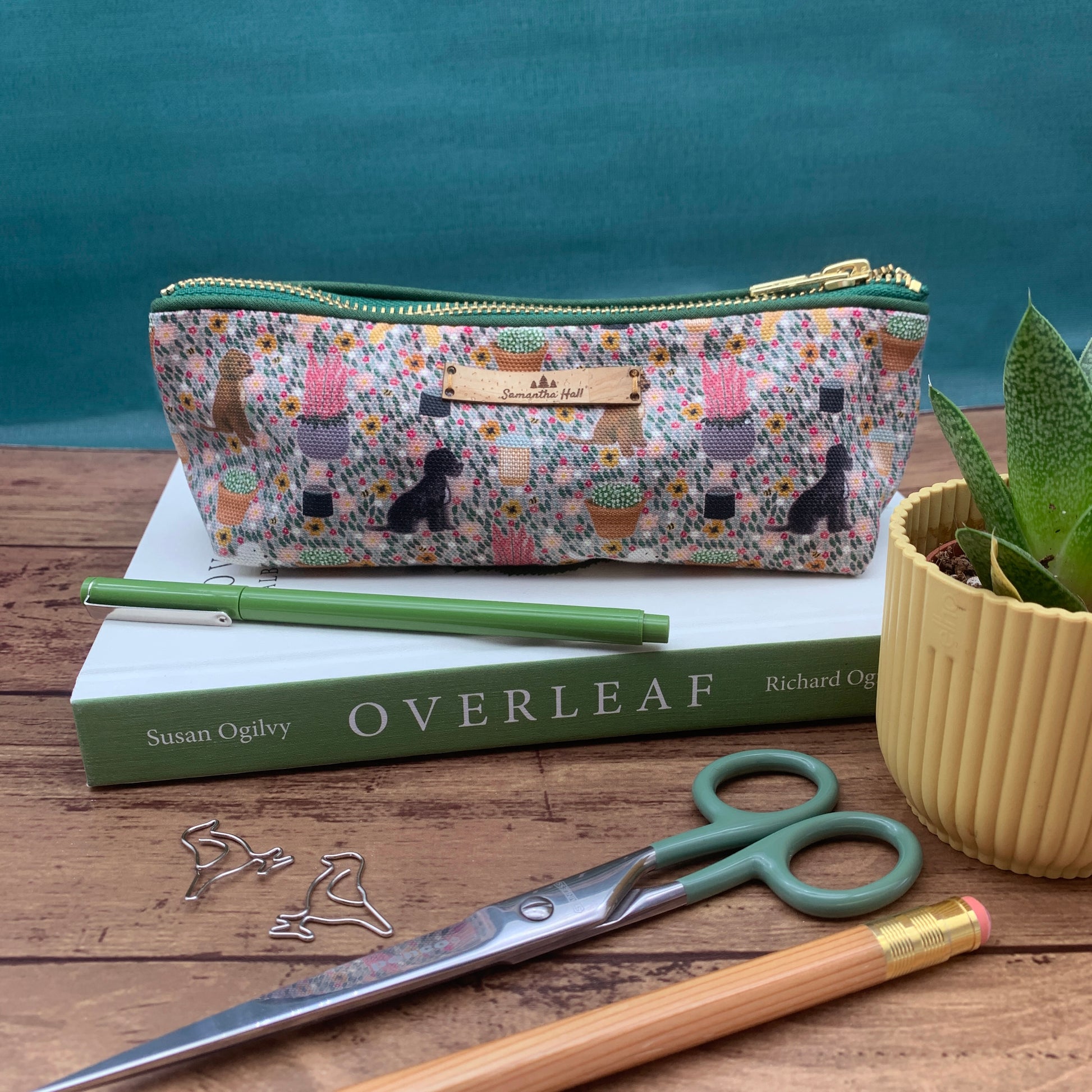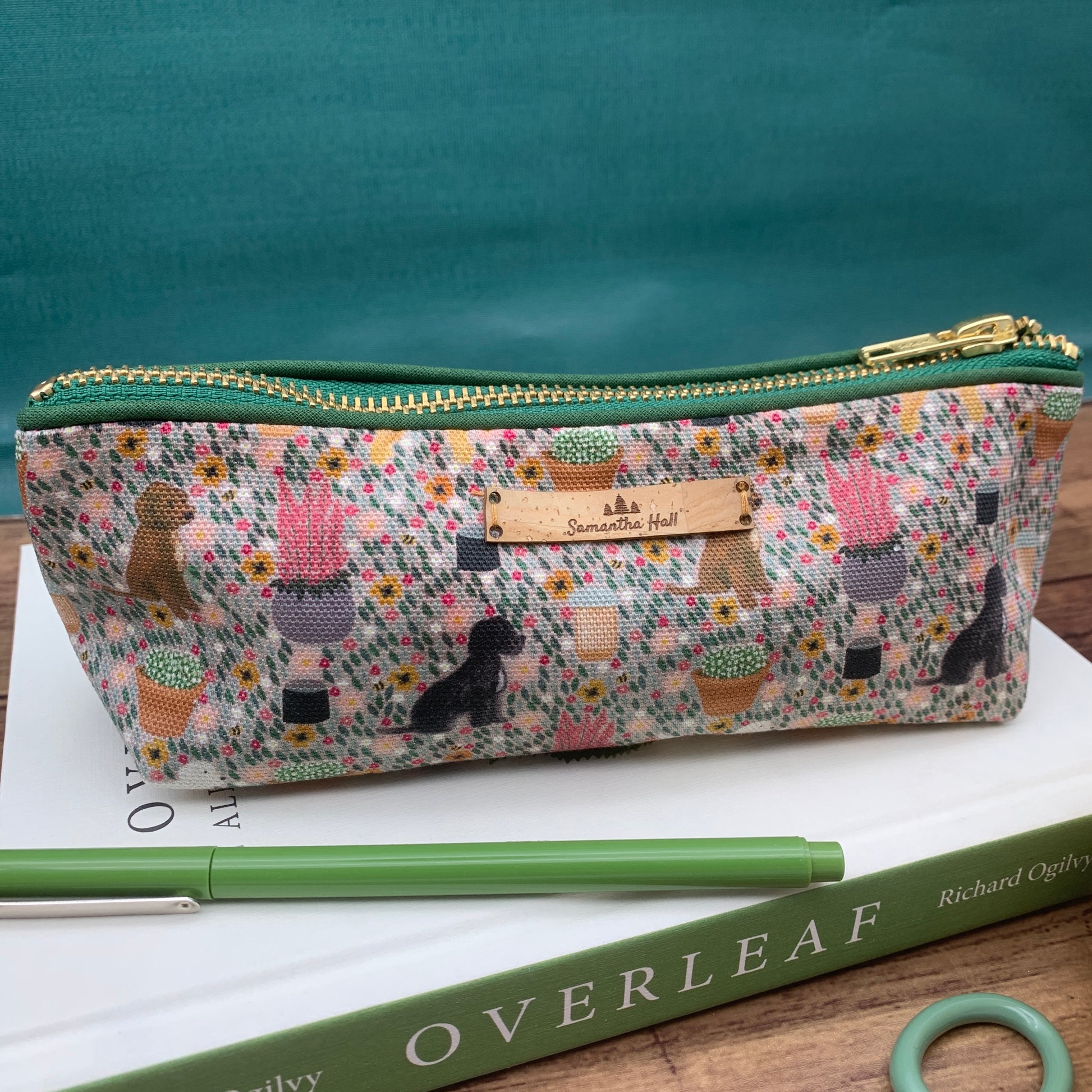 Introducing my Cockapoo pencil case, perfect for using at school, in the office or in your art studio. Featuring different coloured Cockapoos surrounded by garden plants and bees.