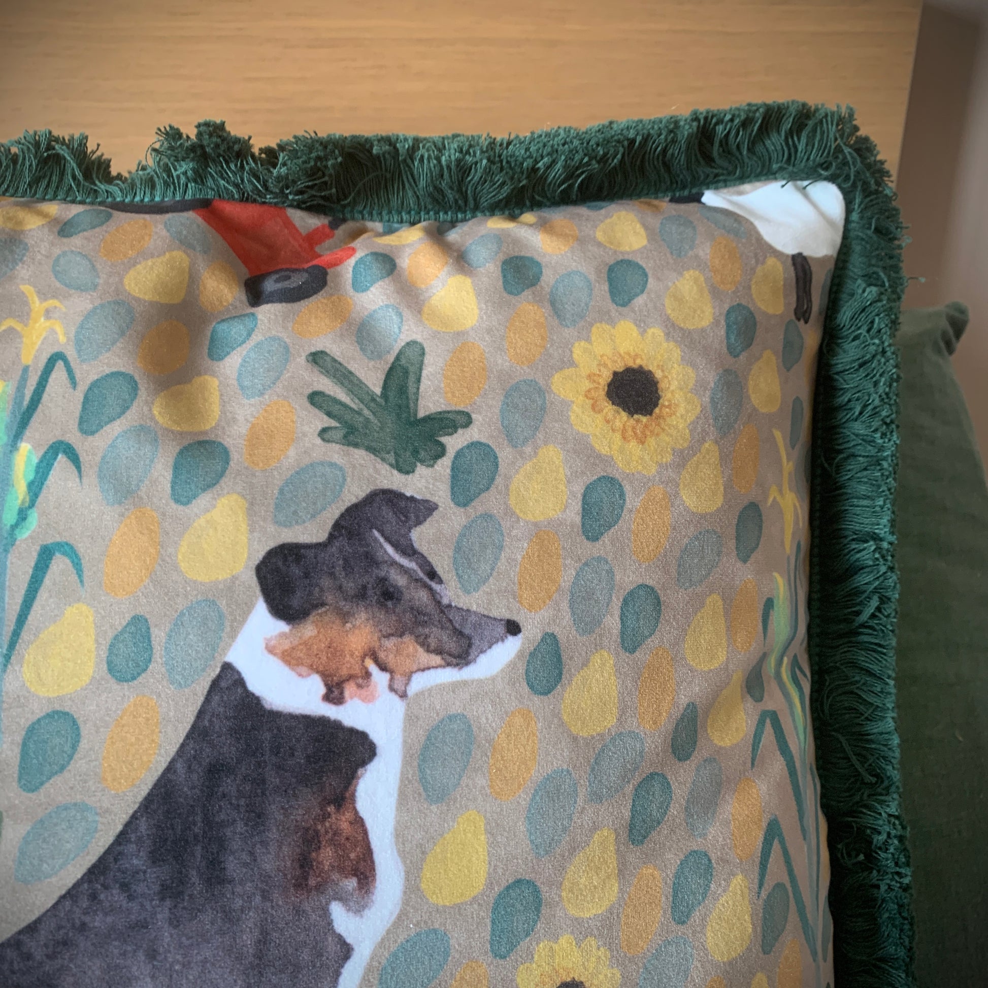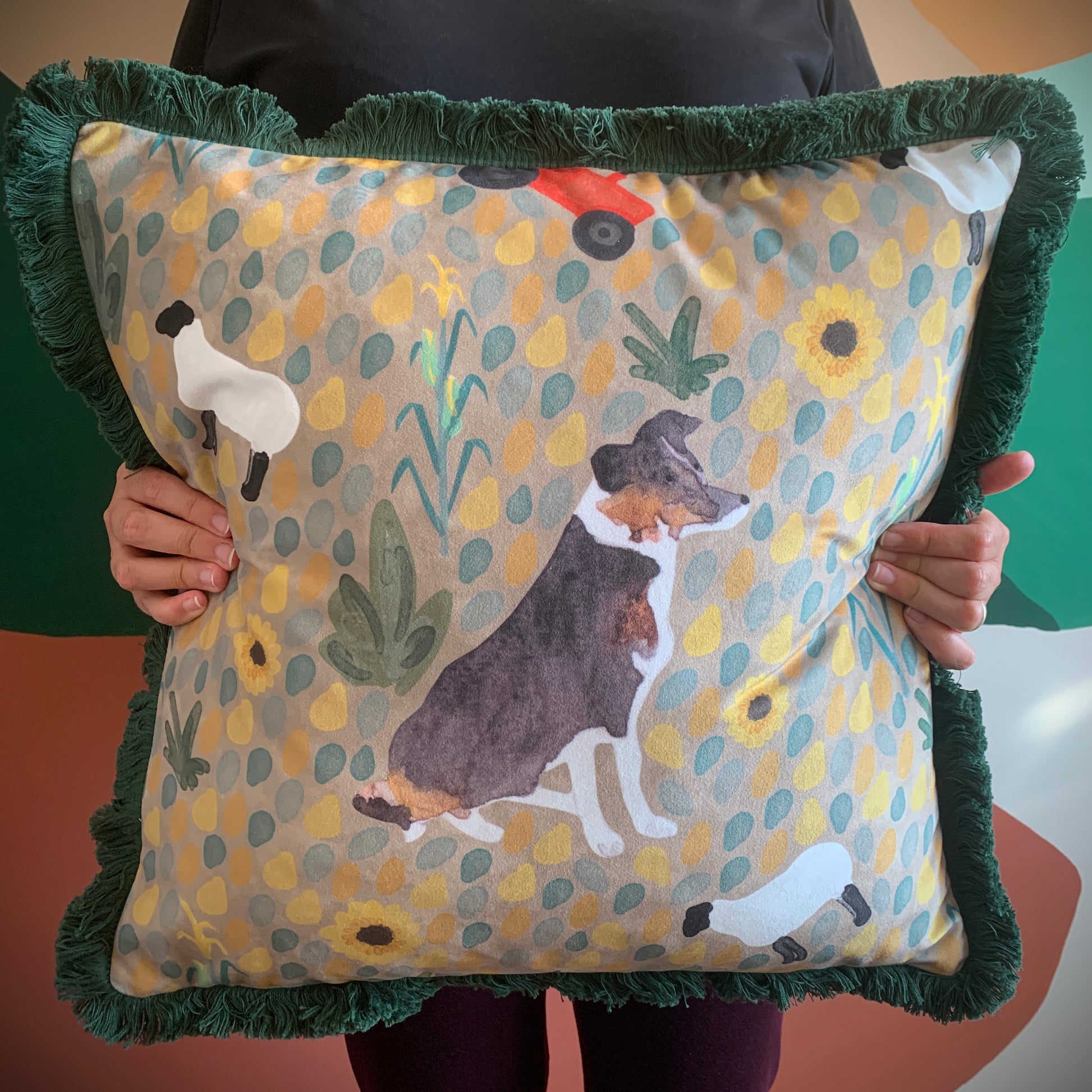 Introducing my luxurious velvet Tri Colour Border Collie cushion. This cushion was inspired by my love for the breed and farming life. A great gift for someone who loves dogs!