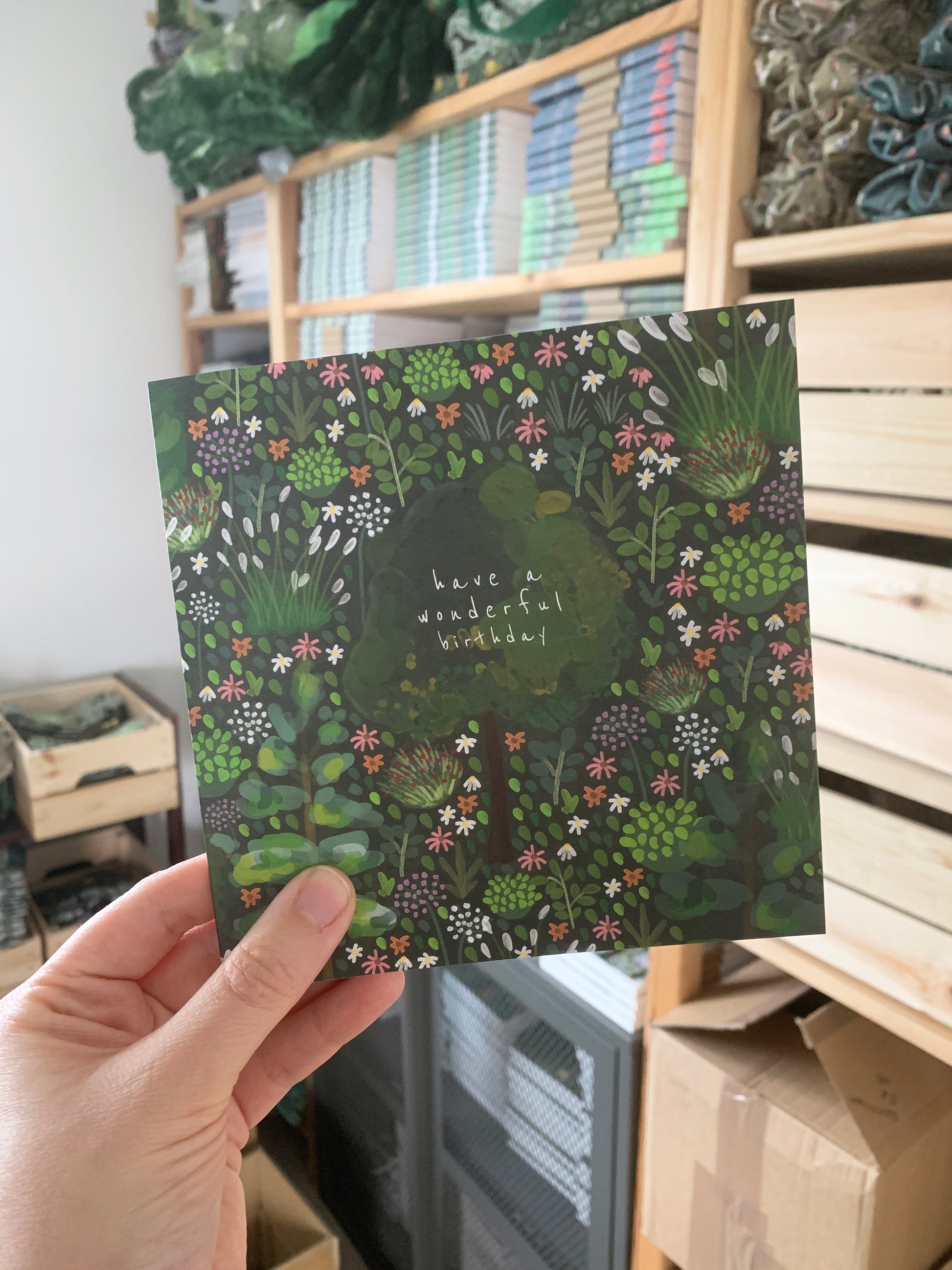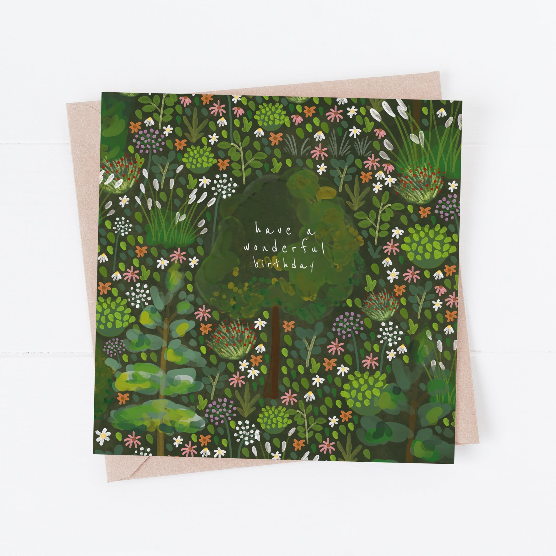 Introducing my Happy Birthday Summer Forest greeting card featuring a gorgeous woodland scene showing off the vibrant flowers and life we find in the forest. This adorable card is perfect for giving to a loved one who loves nature.