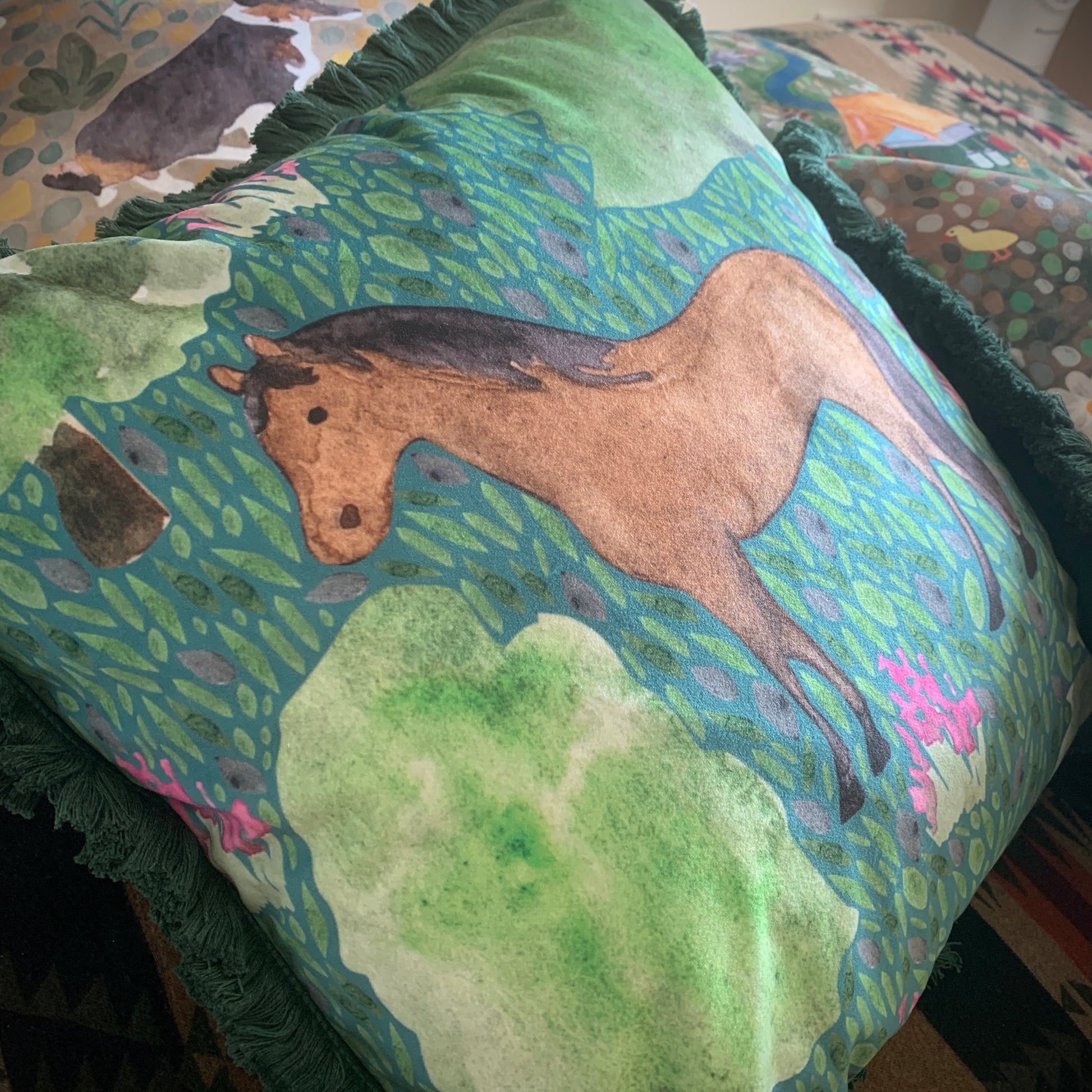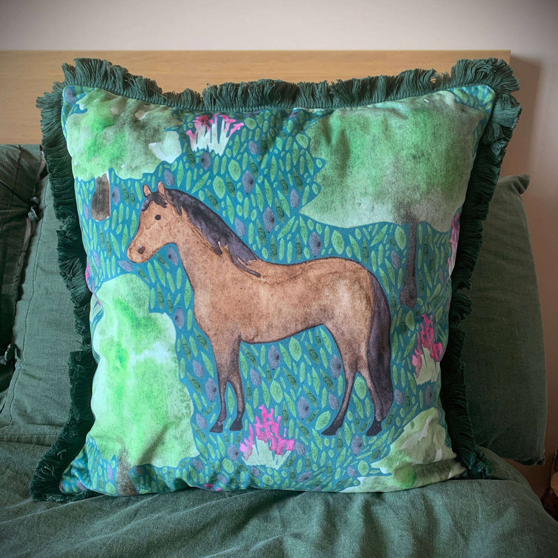 Introducing my luxurious velvet Mustang Horse cushion. This cushion was inspired by my love for horses and the New Forest. A great gift for someone who loves Horses!