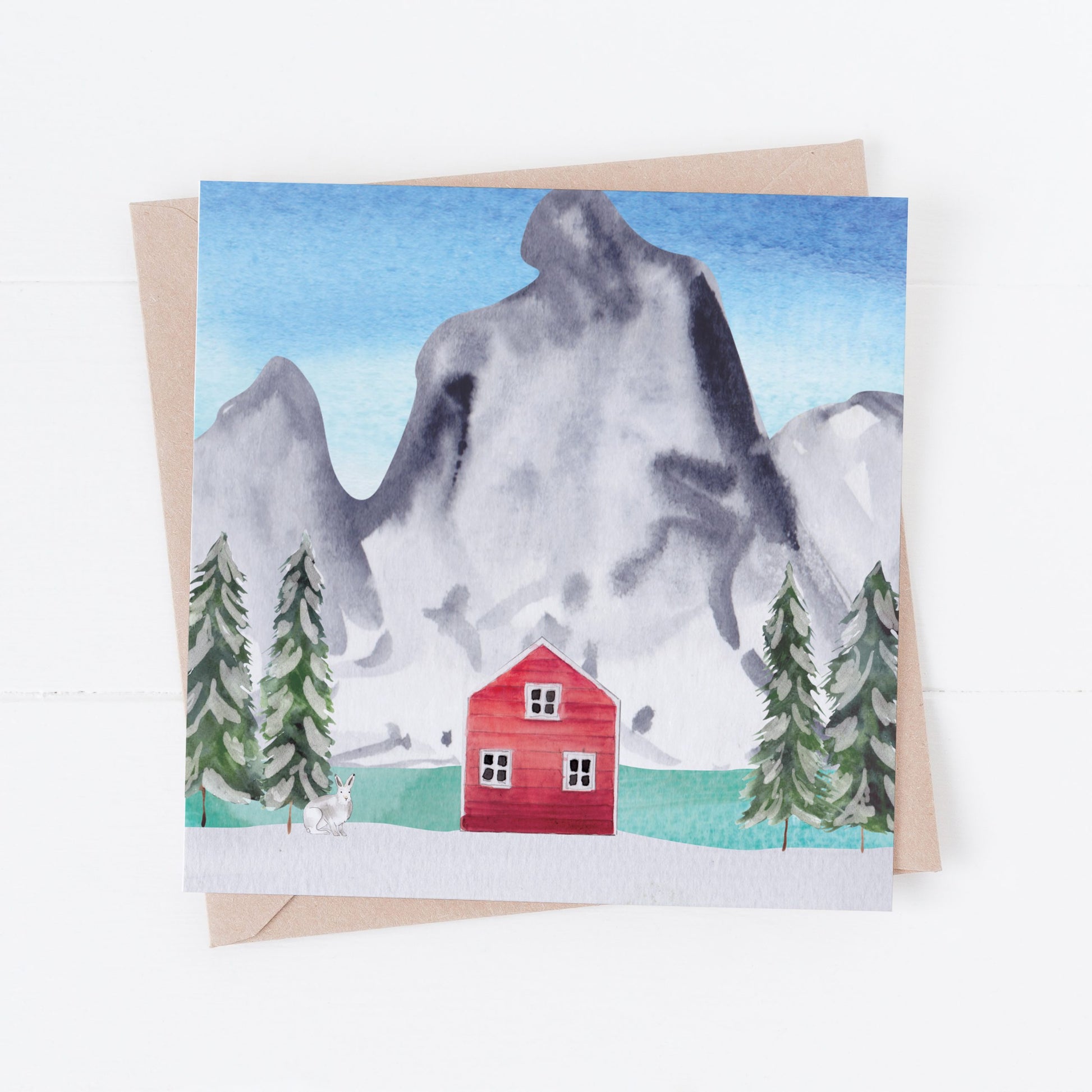 This card is a part of the Winter Wonderland collection. Featuring a hand painted watercolour Hare and red cabin set in the beautiful arctic region of Northern Norway. This collection was inspired by my love for the Lofoten Islands and the wonderful wildlife you will find there.