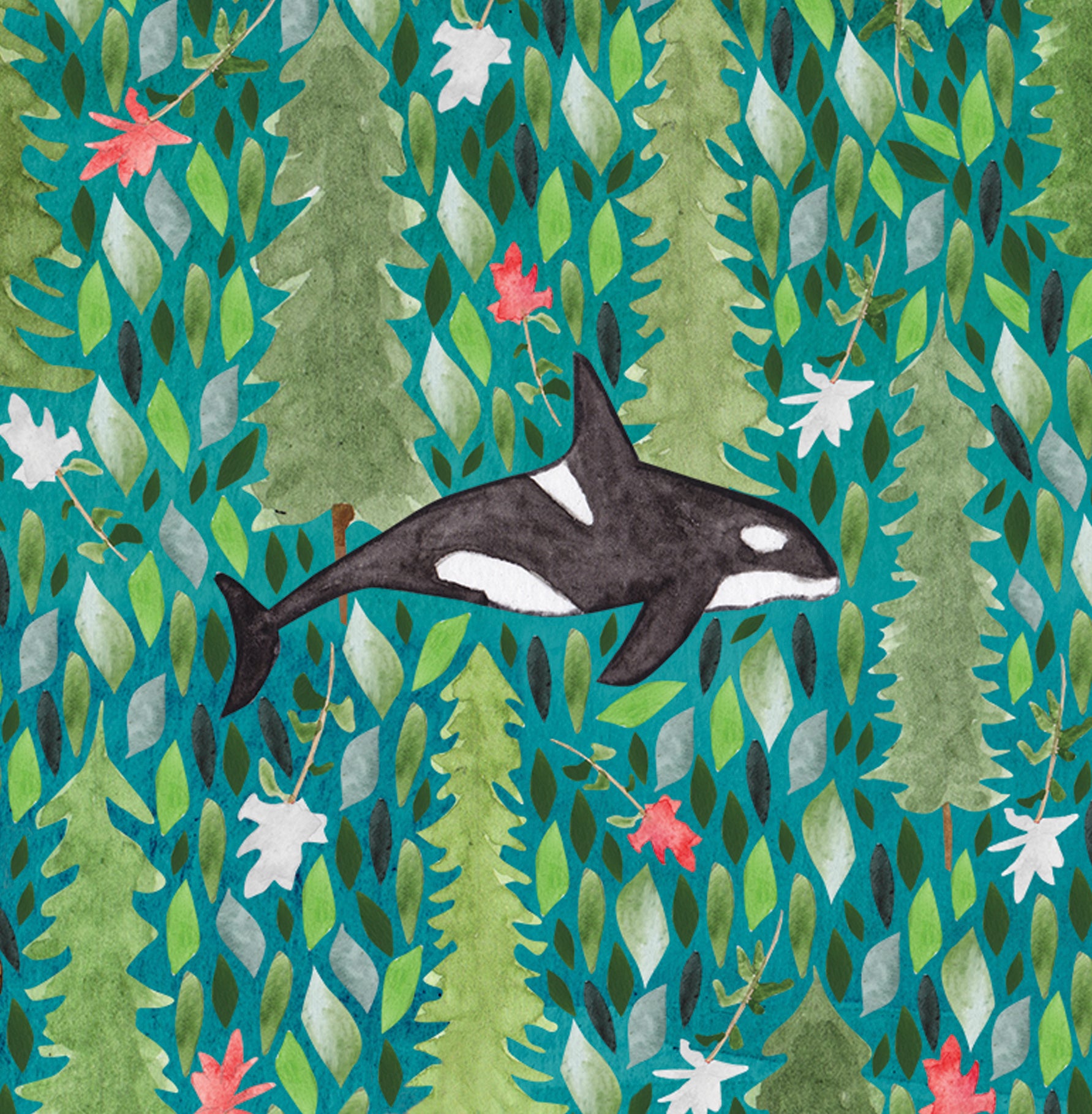Introducing my Orca greeting card. Featuring a killer whale amongst the pacific northwests beautiful forests, flowers and the ocean. This card is perfect for giving to a loved one who loves orcas!