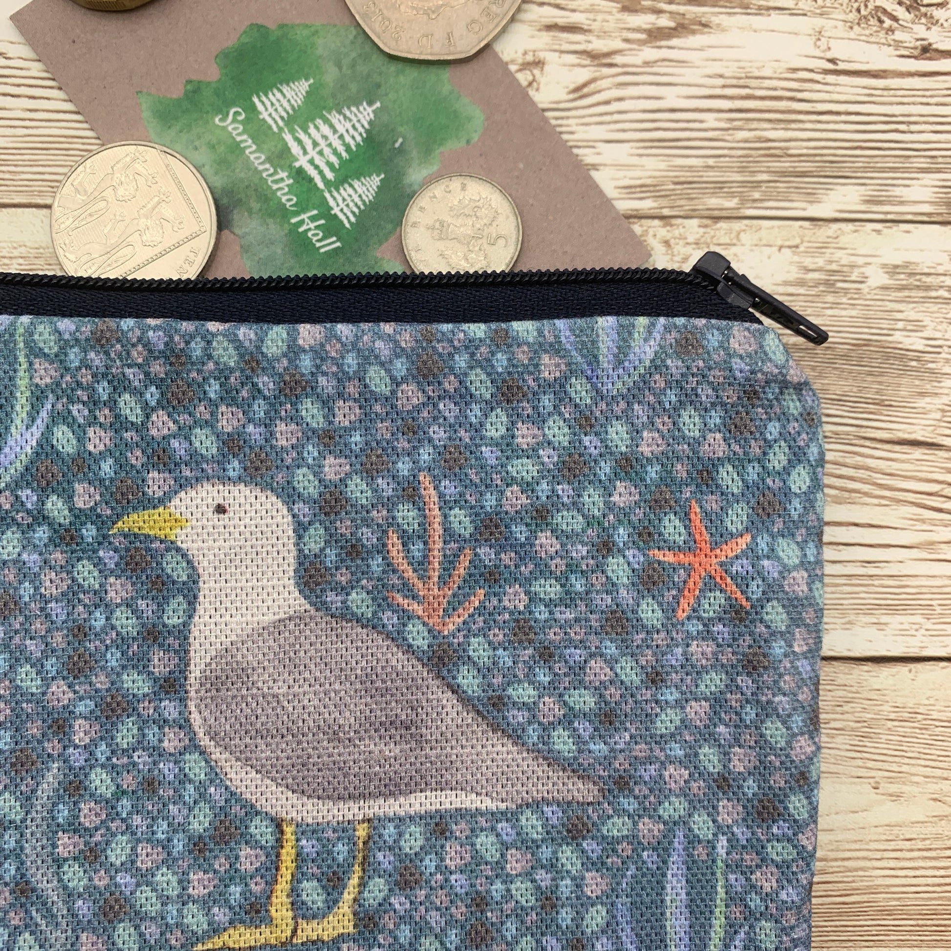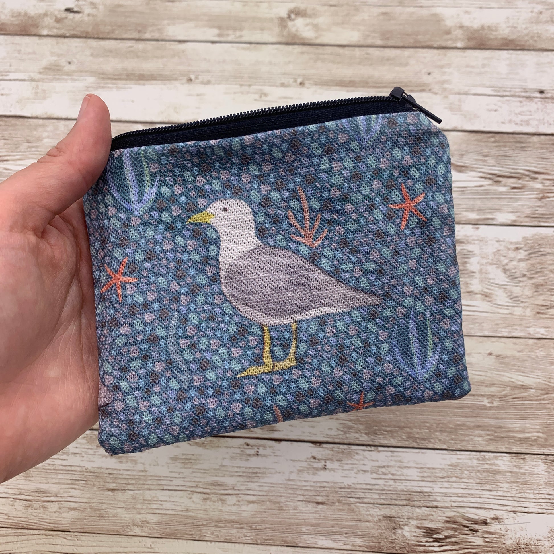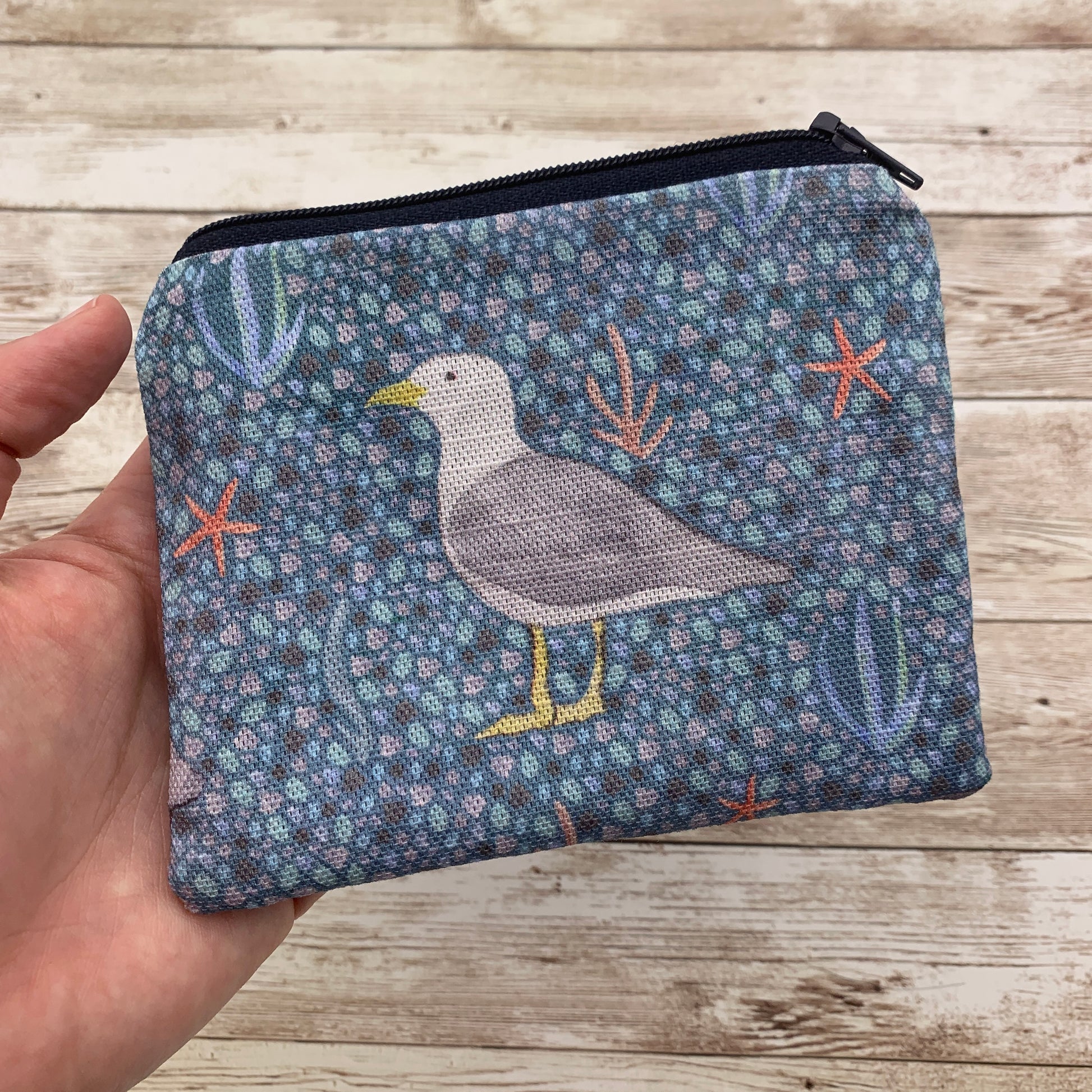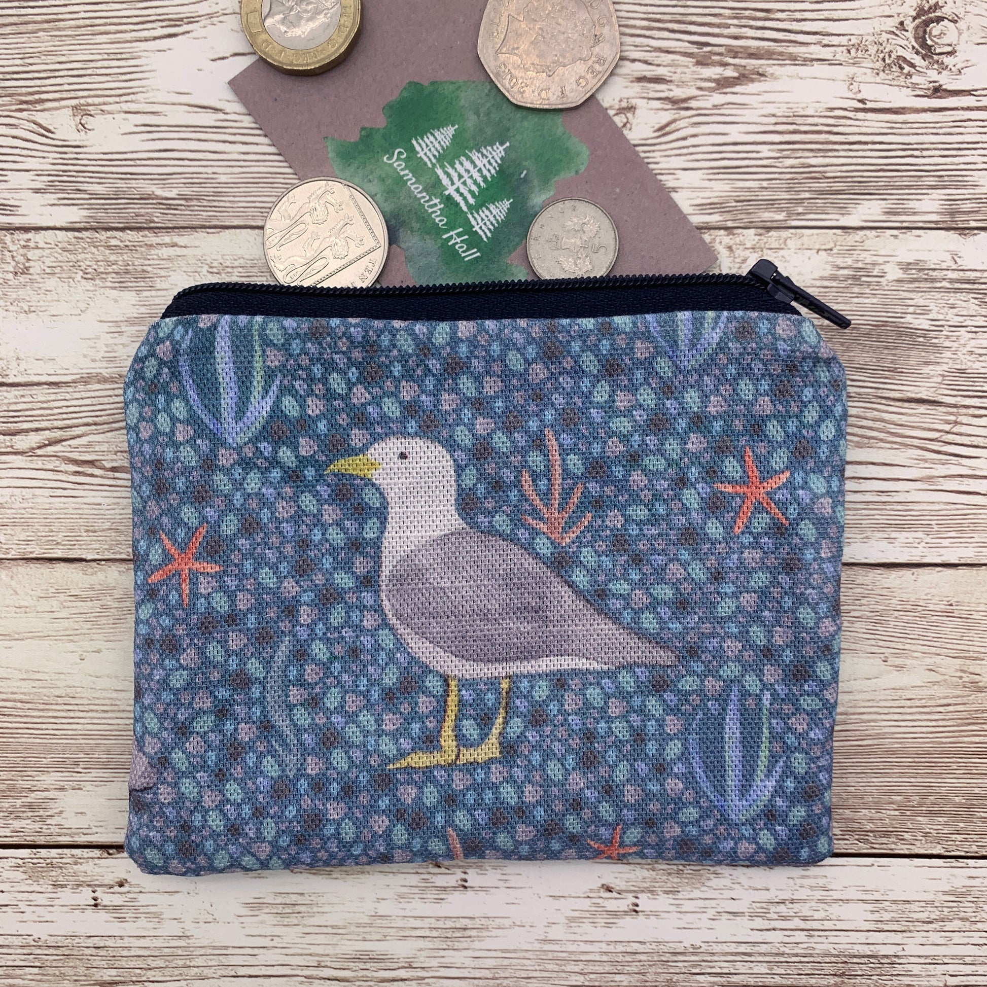 Introducing my Seagull coin purse. Featuring a hand painted watercolour seagull surrounded by coral, pebbles and starfish.