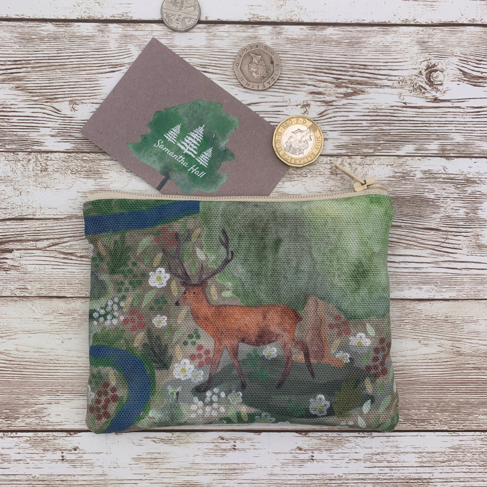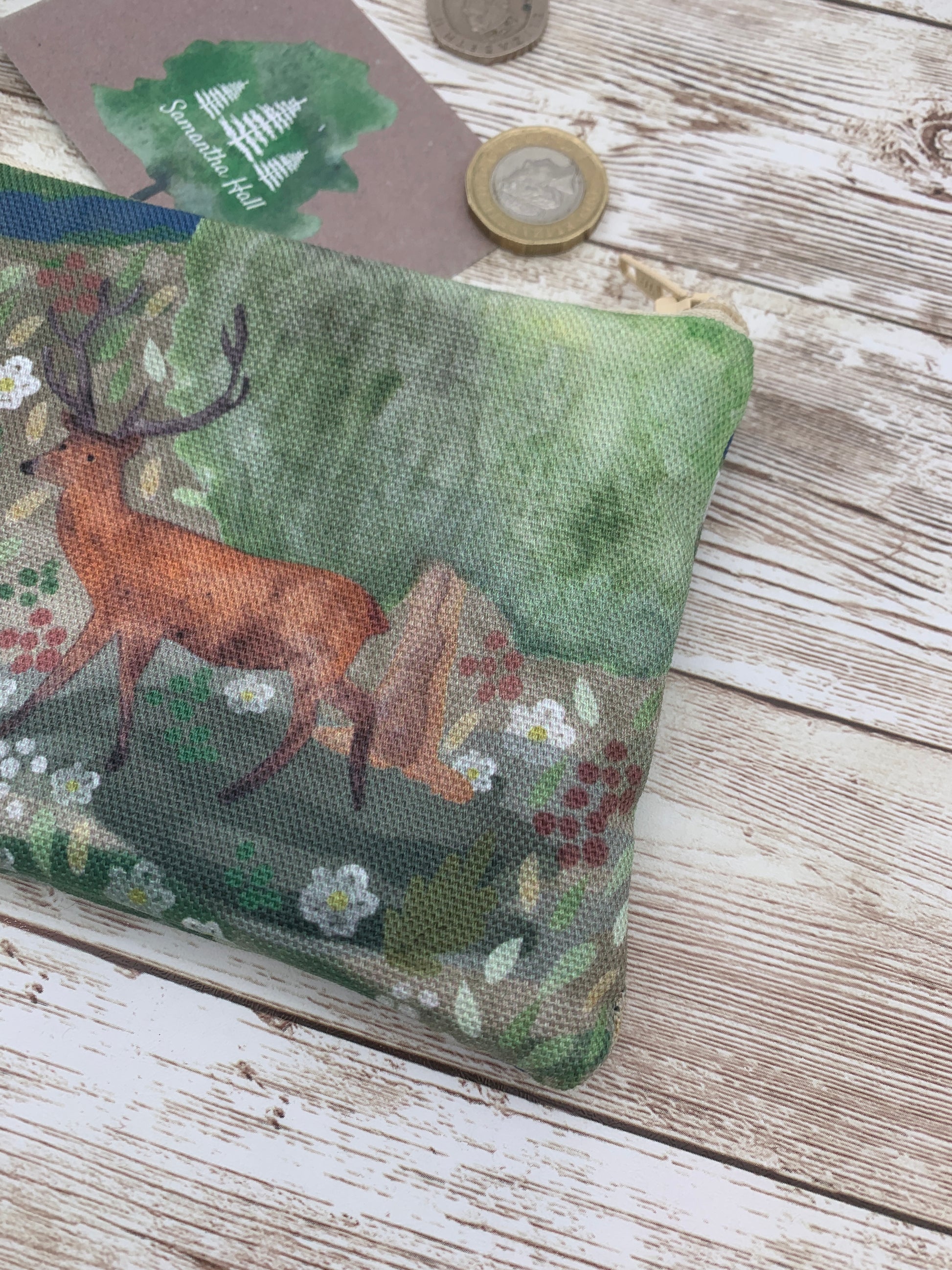 Introducing my Stag coin purse. Featuring a hand painted watercolour deer surrounded by trees and flowers in the forest!
