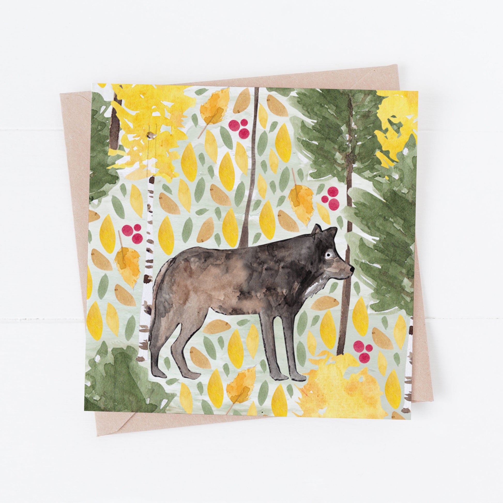Introducing my Wolf blank greeting card from my Animals of Finland collection. Featuring a Finnish Wolf surrounded by autumnal birch trees, leaves and Lingonberries. This design was inspired by mine and my husbands honeymoon to Finnish Lapland in the autumn. I fell in love with the colours and the animals of the area. Truly magical.